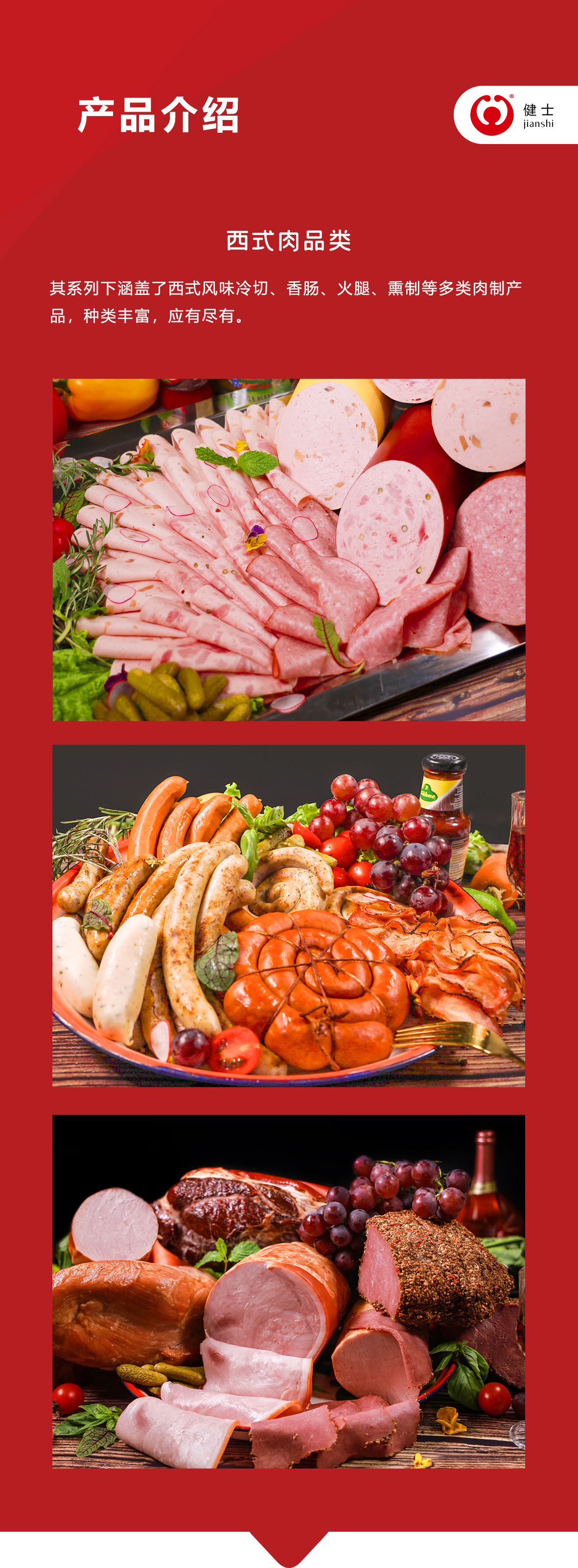 公司注冊商標(biāo)為“健士”,主營業(yè)務(wù)涉及西式肉制品、中式預(yù)制半成品,以及與國家級(jí)鮭鱒魚養(yǎng)殖基地深度合作開發(fā)的高端水產(chǎn)品,公司旗下還設(shè)立了清真食品分公司,將業(yè)務(wù)延伸至清真肉制品加工領(lǐng)域。公司秉承“誠信為本,客戶至上,團(tuán)結(jié)奮進(jìn),追求卓越”的經(jīng)營理念。產(chǎn)品銷往全國各大城市星級(jí)酒店、航空配餐企業(yè)及大型連鎖餐飲,部分產(chǎn)品遠(yuǎn)銷至香港等地區(qū)。
