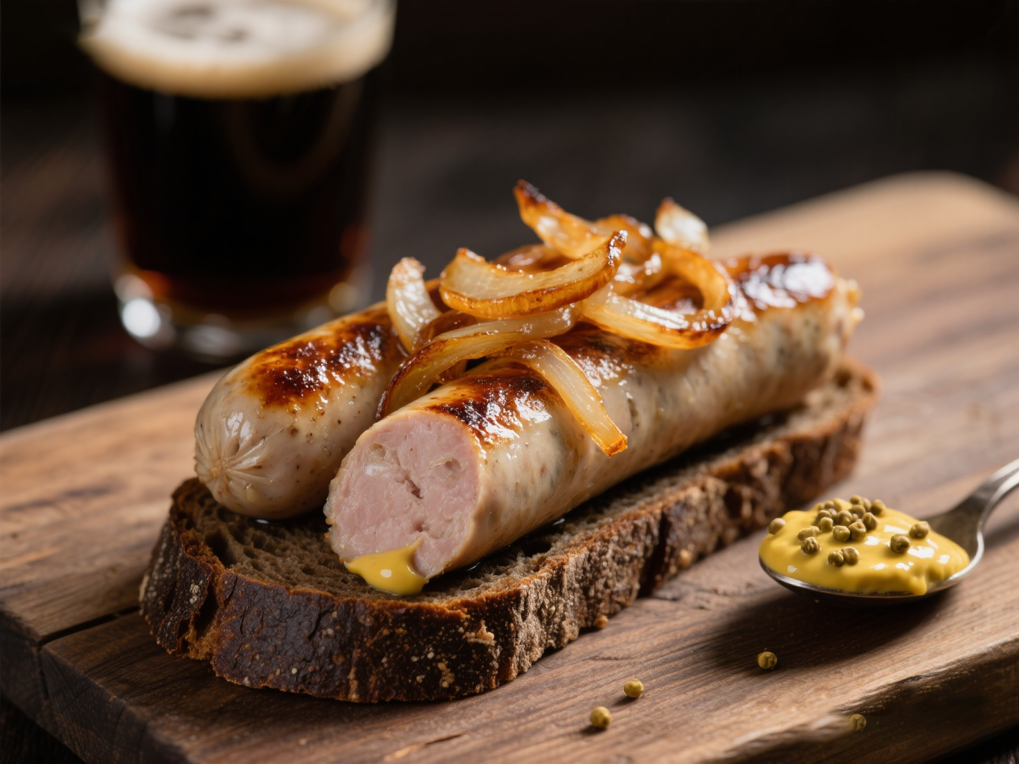 ④ 享用: 務(wù)必搭配一大碟辛辣的芥末醬。切一塊腸,連同洋蔥和面包一起放入口中,再佐一口冰鎮(zhèn)的德國(guó)黑啤或烈性艾爾啤酒,風(fēng)味最是地道。